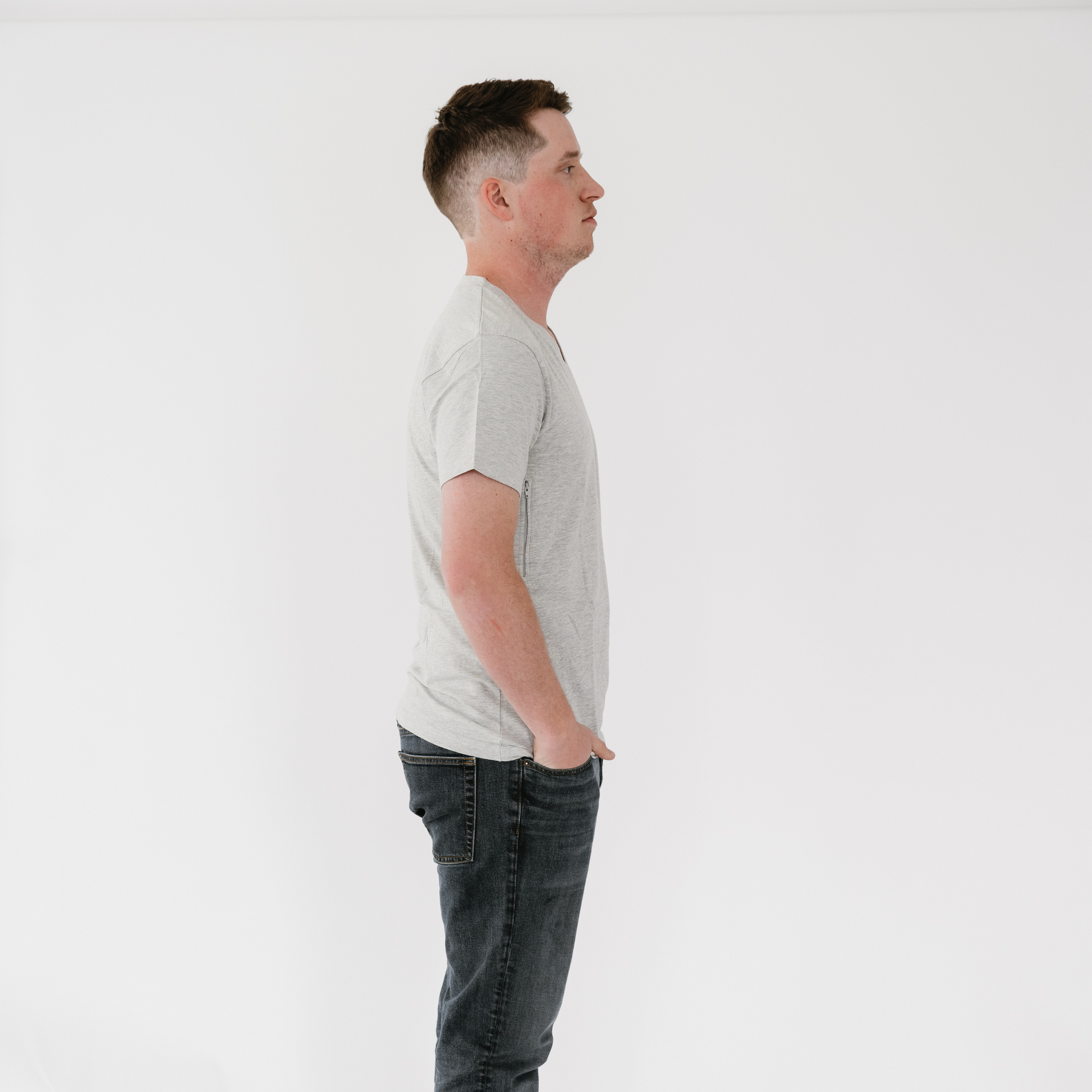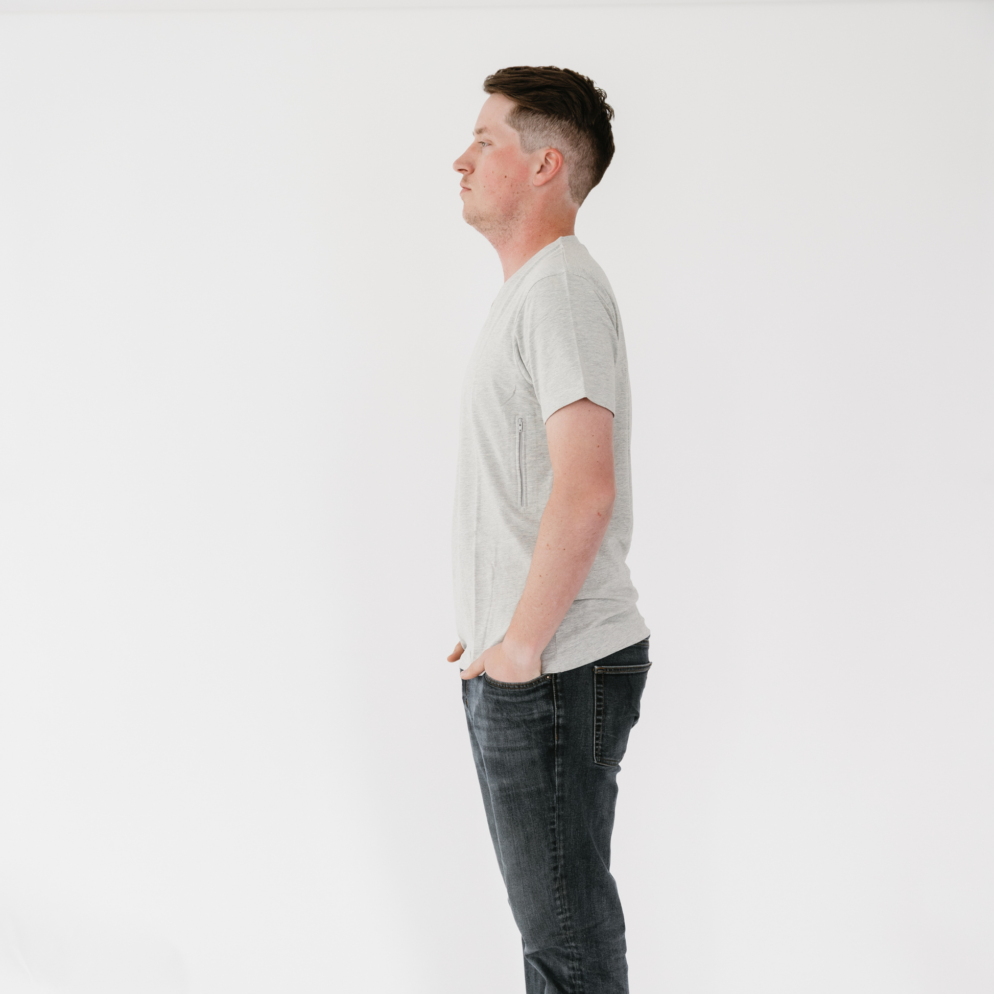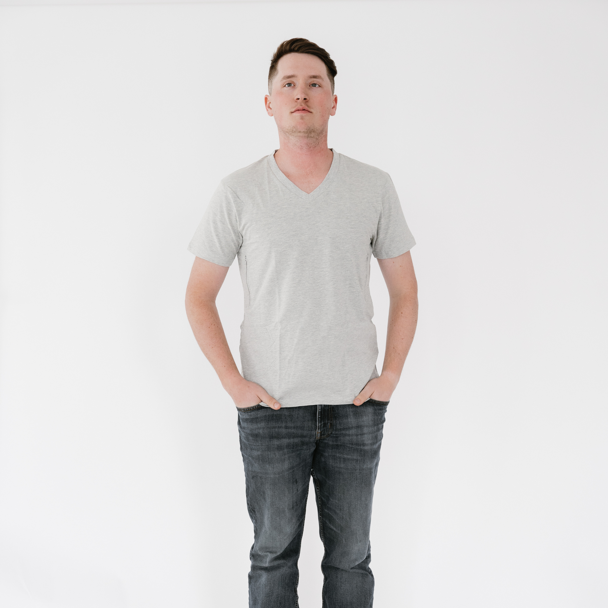 Unisex V-neck T-shirt with 2 pockets makes hiding valuables a breeze!